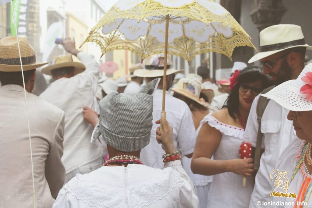Questa festa popolare e tradizionale non è altro che una parodia degli emigranti di La Palma che tornarono con le loro famiglie dalle Americhe, principalmente da Cuba nei secoli XVIII, XIX e XX e si vantavano della loro ritrovata ricchezza e posizione privilegiata. I partecipanti indossano abiti bianchi e innumerevoli accessori che evocano l’opulenza della classe sociale benestante che amava ostentare la propria ricchezza